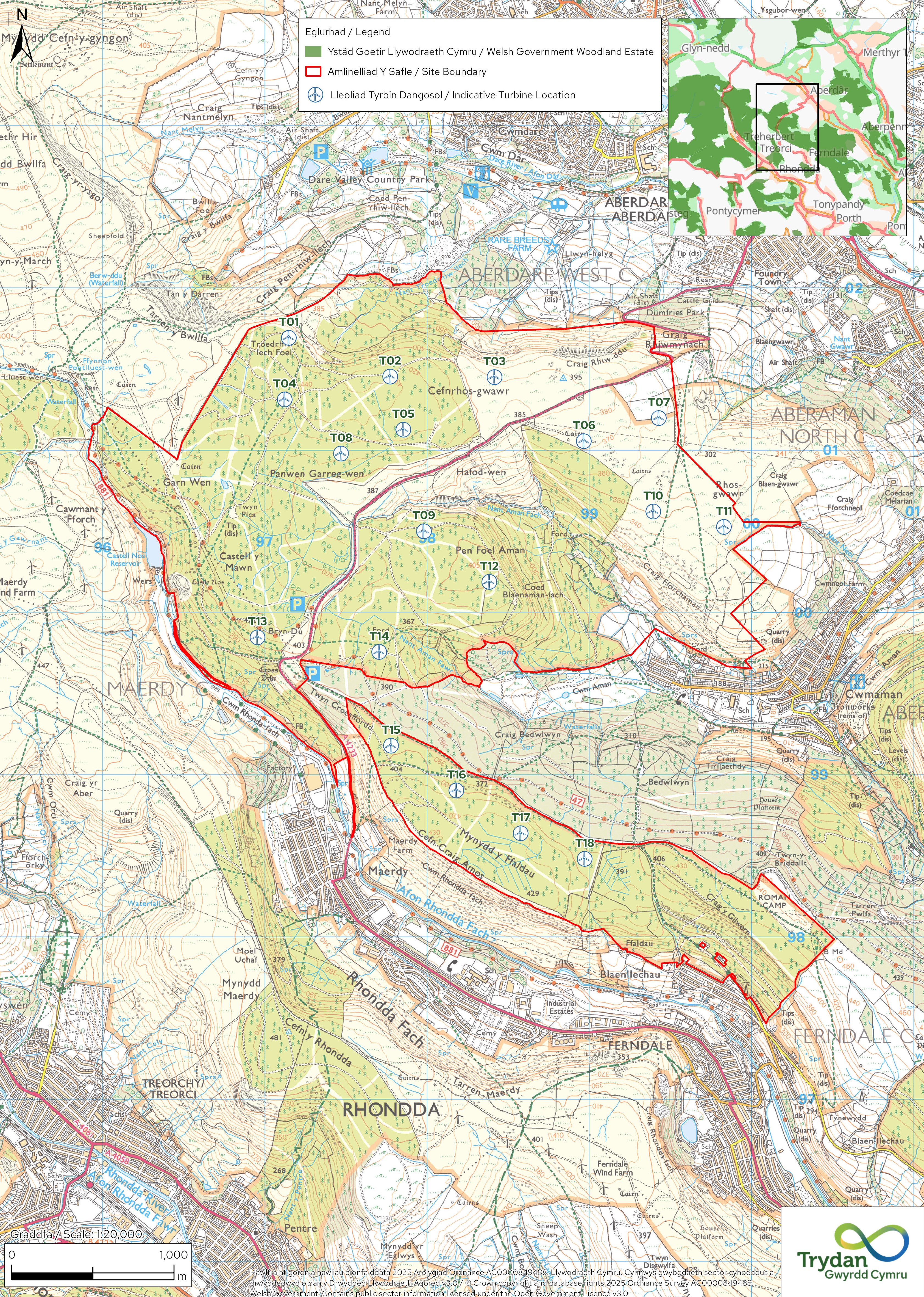 Trydan Gwyrdd Cymru (Trydan) yw datblygwr ynni adnewyddadwy Cymru sy'n eiddo llwyr i Lywodraeth Cymru. Rydym yn ymchwilio i'r potensial ar gyfer ffermydd gwynt newydd gyda storfa ynni batri o fewn nifer o flociau Ystad Goetir Llywodraeth Cymru, gan gynnwys Coedwig Sant Gwynno. Wedi'i leoli tua 2km i'r de o Aberdâr ac i'r gogledd-orllewin o Abercynon yng Nghymoedd De Cymru, mae'r safle o fewn ffin Awdurdod Lleol Rhondda Cynon Taf.